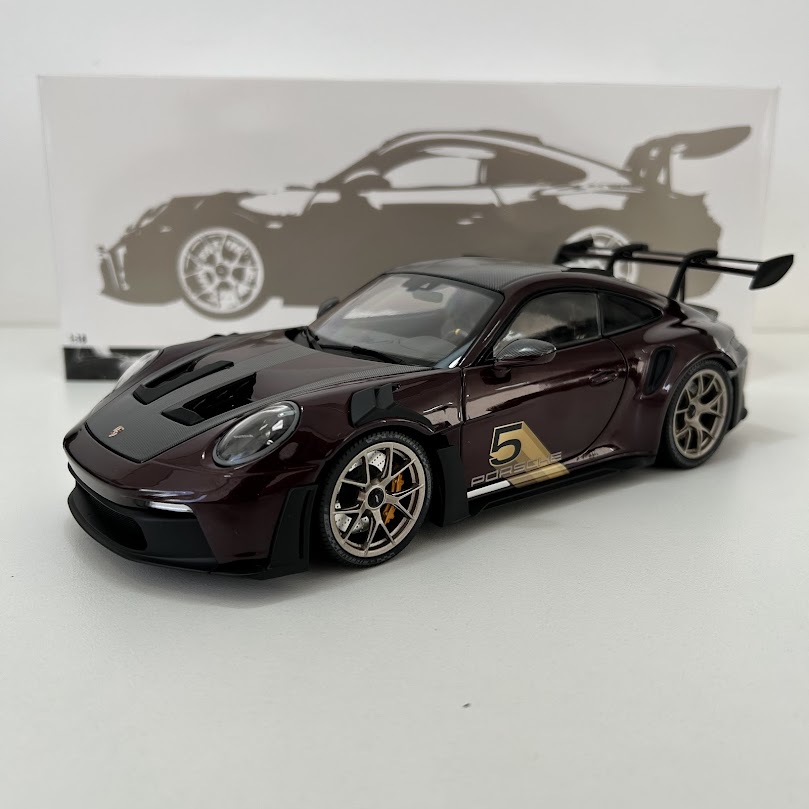 A perfeição em forma de miniatura. Esta é a Porsche 911 GT3 RS 2024 na escala 1:18, produzida pela consagrada marca Minichamps, referência mundial em modelos de alto padrão. Um verdadeiro item de colecionador, que une precisão, acabamento premium e presença marcante.