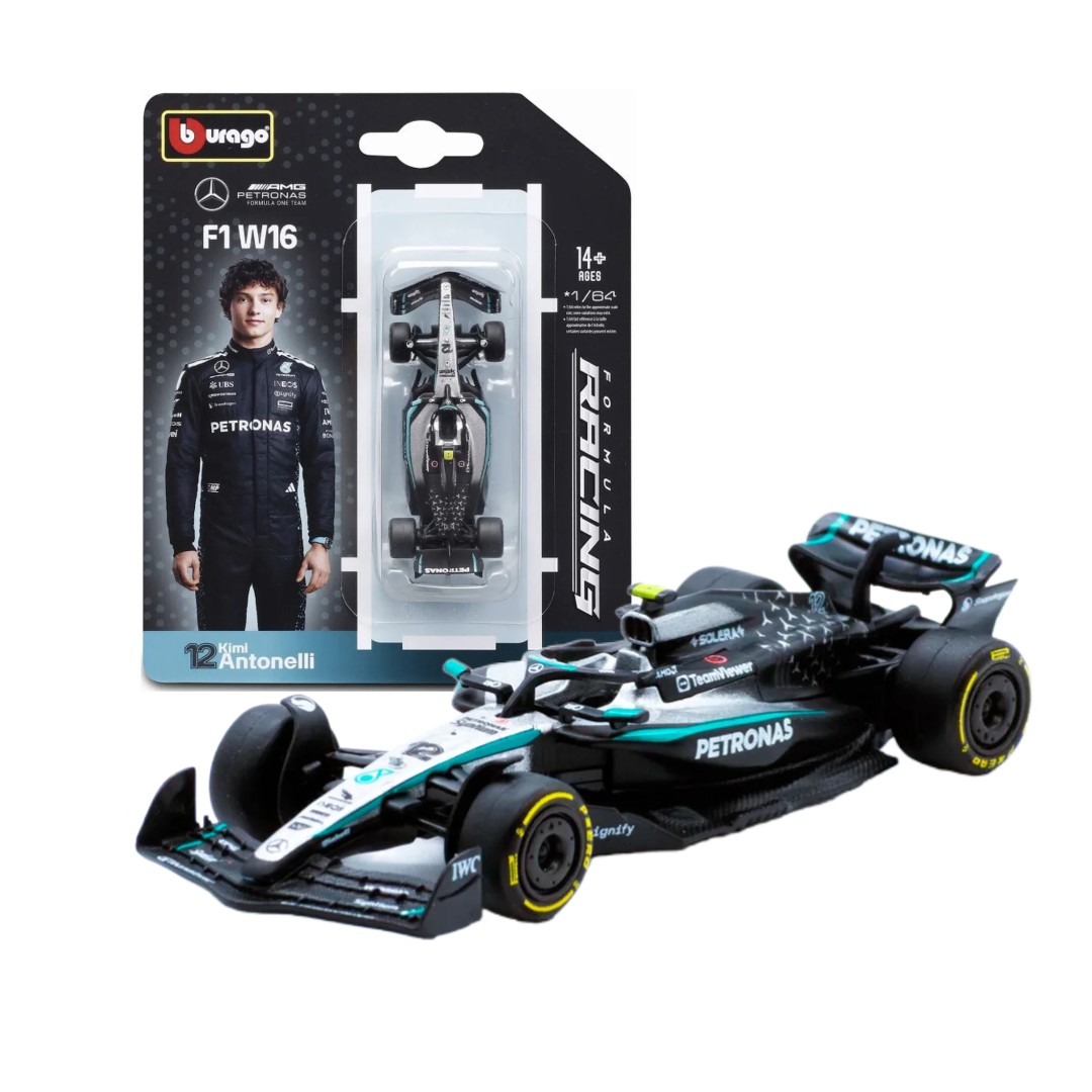 Leve a emoção da Fórmula 1 para a sua coleção com a miniatura do Mercedes F1 W16 Nº12, pilotado por Kimi Antonelli, em escala 1/64, produzida pela consagrada marca Bburago. Um modelo compacto, mas extremamente fiel aos detalhes do carro real que representa a nova geração da Mercedes na F1.